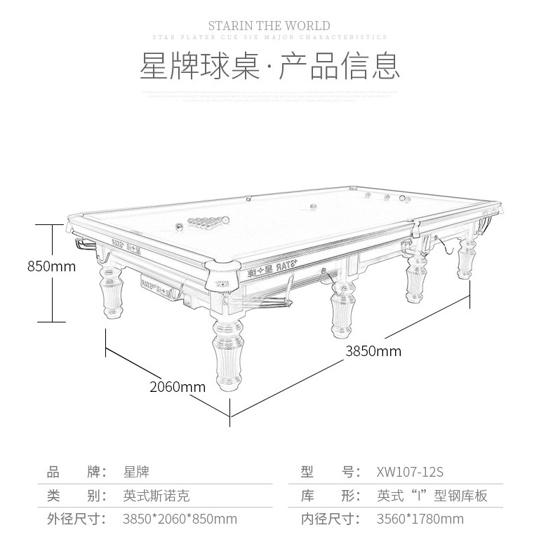 星牌 XW107-12S 英式斯諾克臺球桌