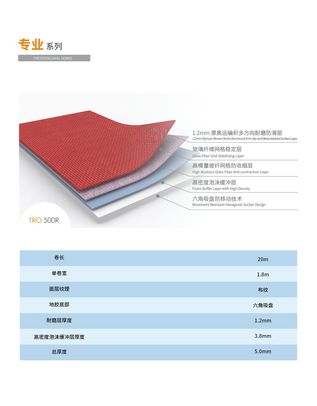 天速乒乓球地膠專業系列TRO 500R珊瑚紅