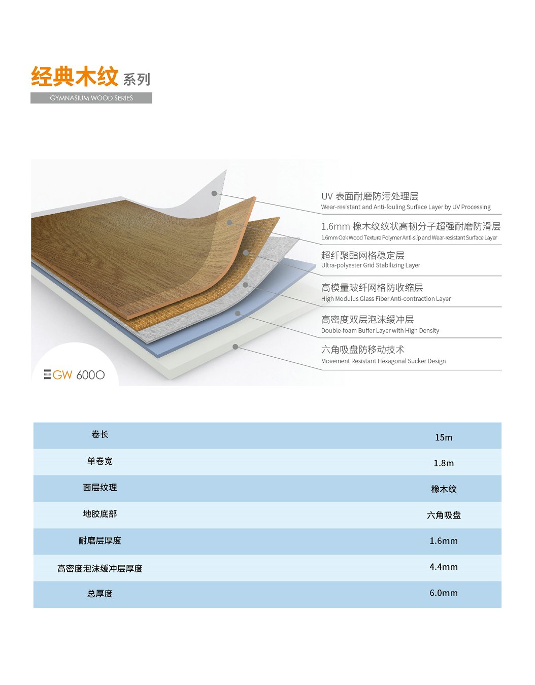 天速綜合地膠籃球場地膠經典木紋系列GW 600O橡木紋