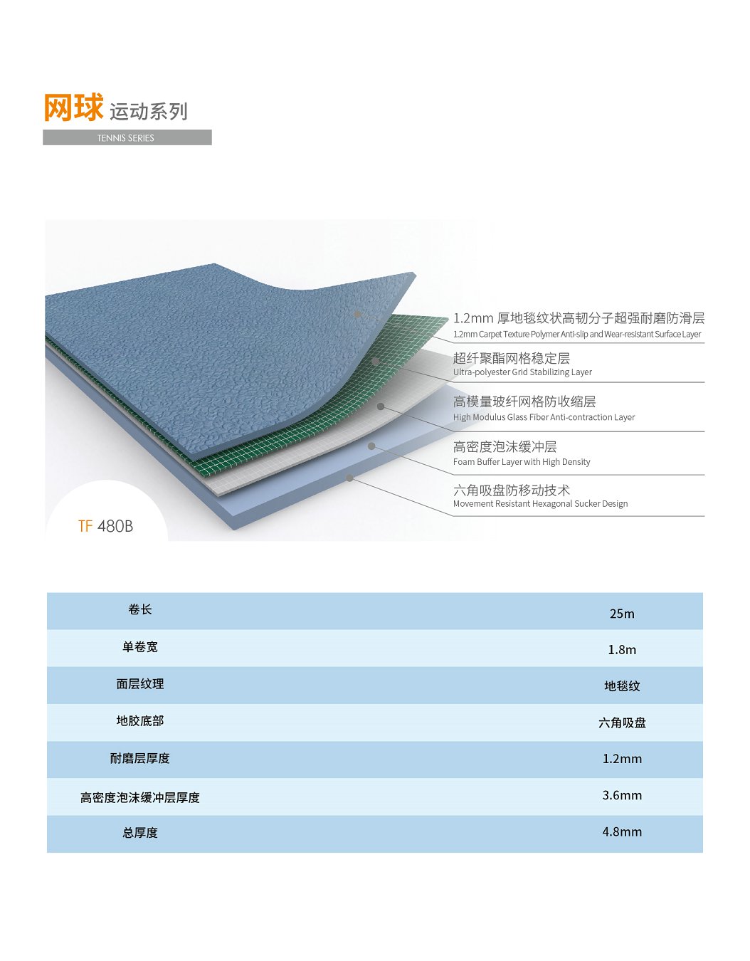 天速綜合地膠網球場地膠經典木紋系列TF 480B天空藍