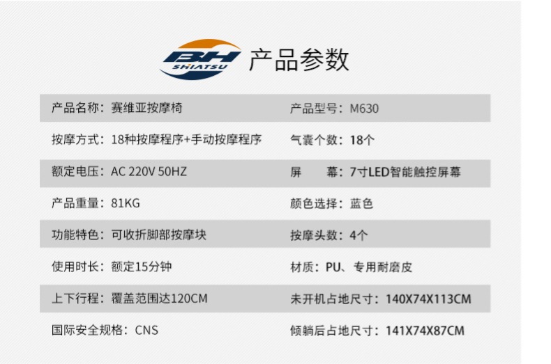 - 必艾奇BH智能按摩椅MB1168