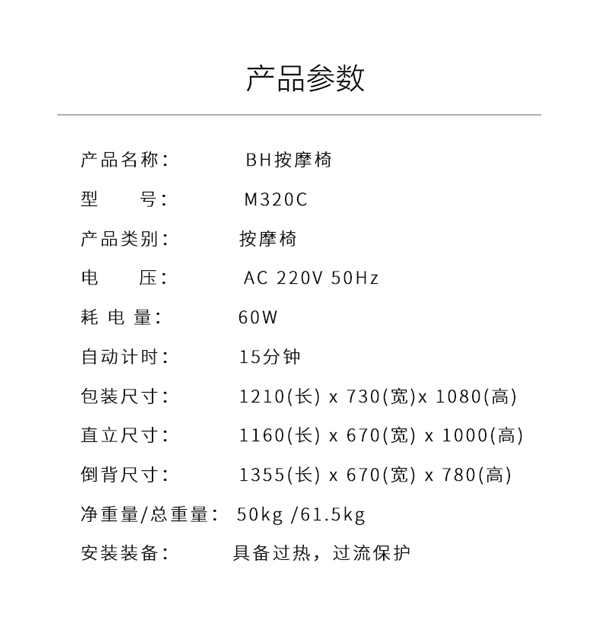 - 必艾奇BH智能按摩椅MB1168